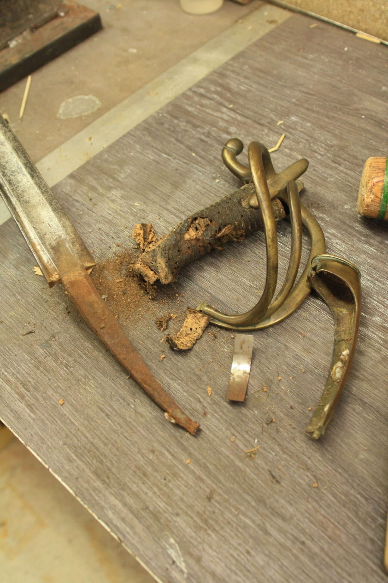 poignée HS entièrement refaite avec la mise en place de deux olives anciennes gravées.